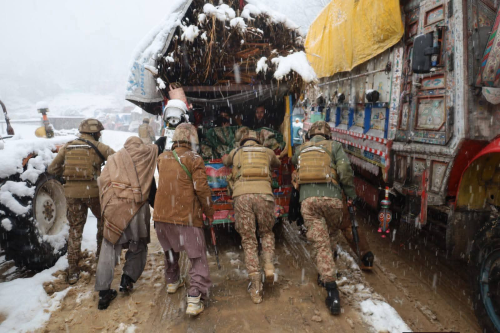 بل لوري ته له وادي تیراه څخه راغلي راپورونه وایی چې د پاکستان آرمي ځوانان هم په لارو کې له تیراه څخه په عارضي ډول نقل مکاني کوونکو کورنیو سره مرستې کوي، په رسنیو داسې انځورونو خپاره شوي دي چې پکې د پاکستان پوځ ځوانان په سختو واورو کې له تیراه متاثرینو سره مرستې کوي، له سرکونو څخه واورې صفا کوي ترڅو ځایی خلک په خوندي ډول نورو خوندي سیمې ته ورسي
