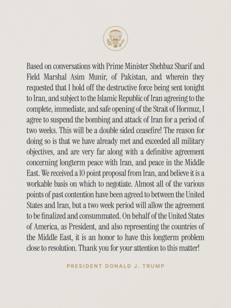 پخوا ولسمشر ټرمپ سخت دریځ غوره کړی و او سختې خبرداری یې ورکړی وو، خو وروستي ځنډ موقتي کړکېچ کم کړی دی. نړیوال د تېلو بیې هم راټیټې شوي، چې د بازار د آرامۍ نښه بلل کېږي د پاکستان ډیپلوماتیکې هڅې یو نادر فرصت د سولې لپاره رامنځته کړی، خو د دې بریالیتوب به د اسلامآباد د خبرو پایلو پورې تړلی وي او دا چې اوربند دایمي حل ته لاره هواروي که نه